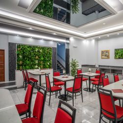 Disfrute de sus comidas en el edificio principal del hotel Kriváň, donde dispone de seis restaurantes que le garantizan un lugar reservado durante toda su estancia. El día comienza con un desayuno tipo buffet, mientras que para el almuerzo y la cena puede elegir entre seis platos principales, preparados según los principios de la cocina dietética checa. Si lo desea, y tras consultar con un nutricionista, también se pueden ofrecer otras formas de dieta personalizadas. La experiencia se completa con un buffet de ensaladas.