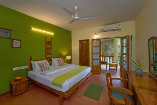 15 habitaciones distribuidas en tres plantas y rodeadas de un hermoso jardín. Gracias a su arquitectura única, las habitaciones ofrecen una vista maravillosa del mar y garantizan total privacidad. Están amuebladas con elegantes muebles de madera que armonizan perfectamente con el agradable clima de Kerala.